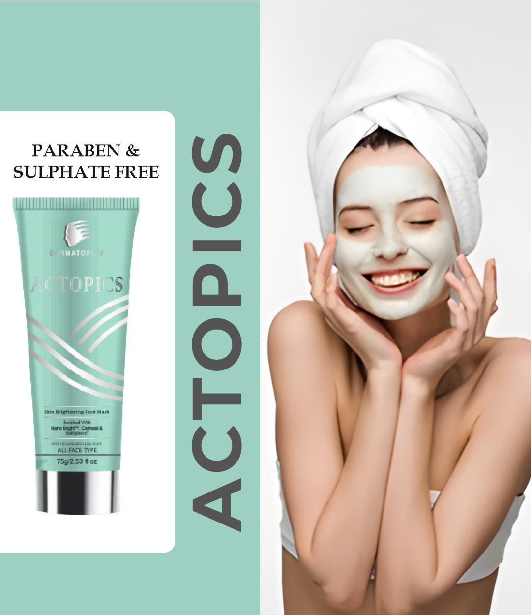 ACTOPICS Face Mask is a dermatologically formulated skin-brightening and clarifying mask designed to promote glowing, radiant, and acne-free skin.