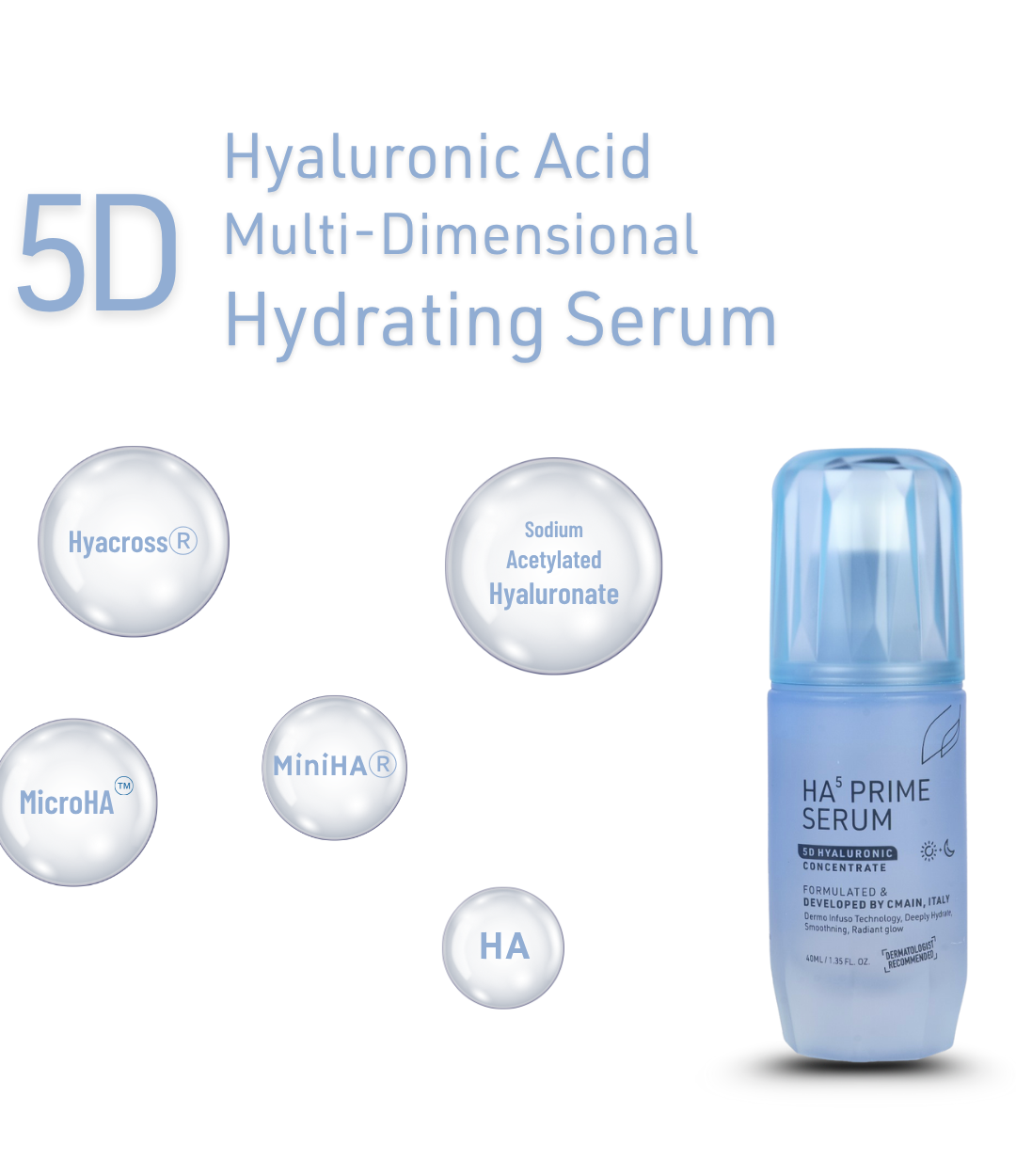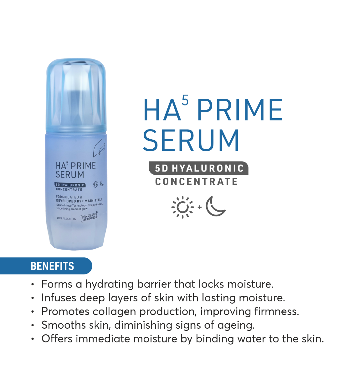 HA5 Prime Serum is designed to provide hydration and improve skin texture, targeting fine lines and wrinkles.
