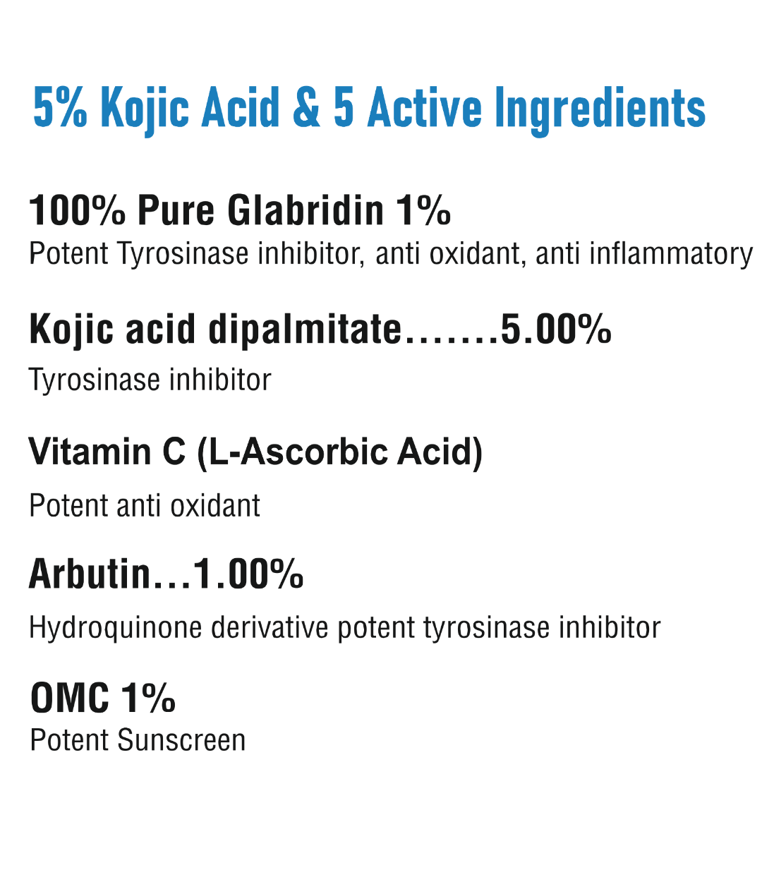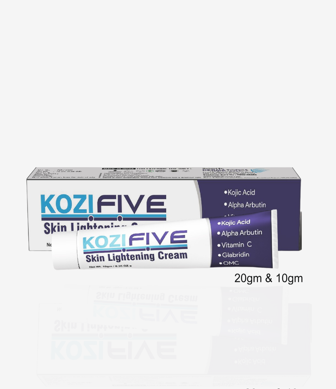 Kozifive Cream is a clinically advanced skin lightening therapy formulated to deliver superior results through highly concentrated active ingredients that act on multiple stages of the melanogenesis cycle. This multi-pathway approach helps effectively reduce pigmentation, repair skin cells, and promote a bright, radiant complexion.