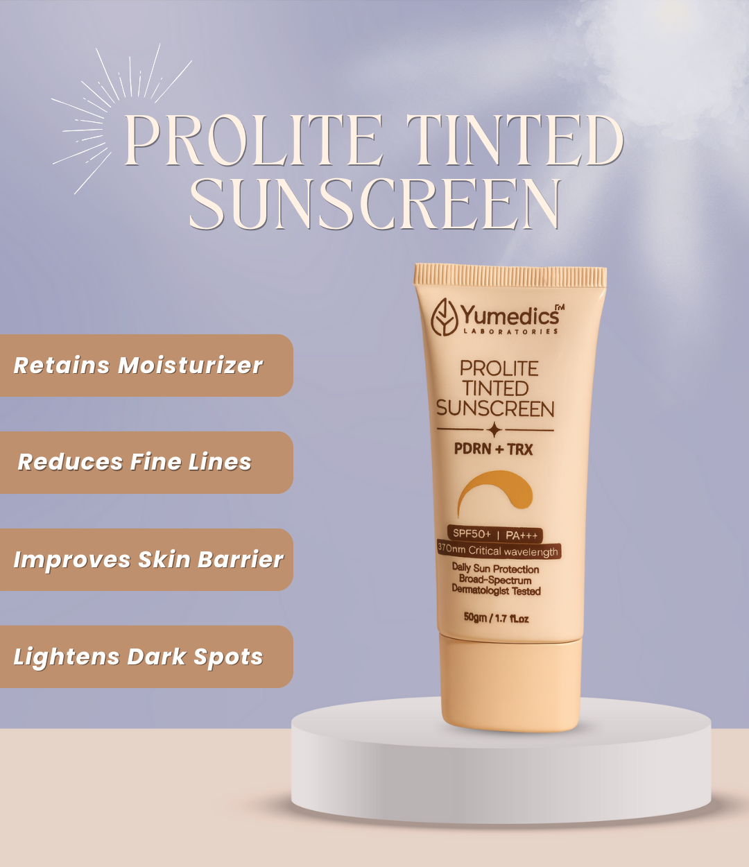 Prolite Tinted Sunscreen is a lightweight, non‑sticky, broad‑spectrum sunscreen with SPF 50+ / PA+++.