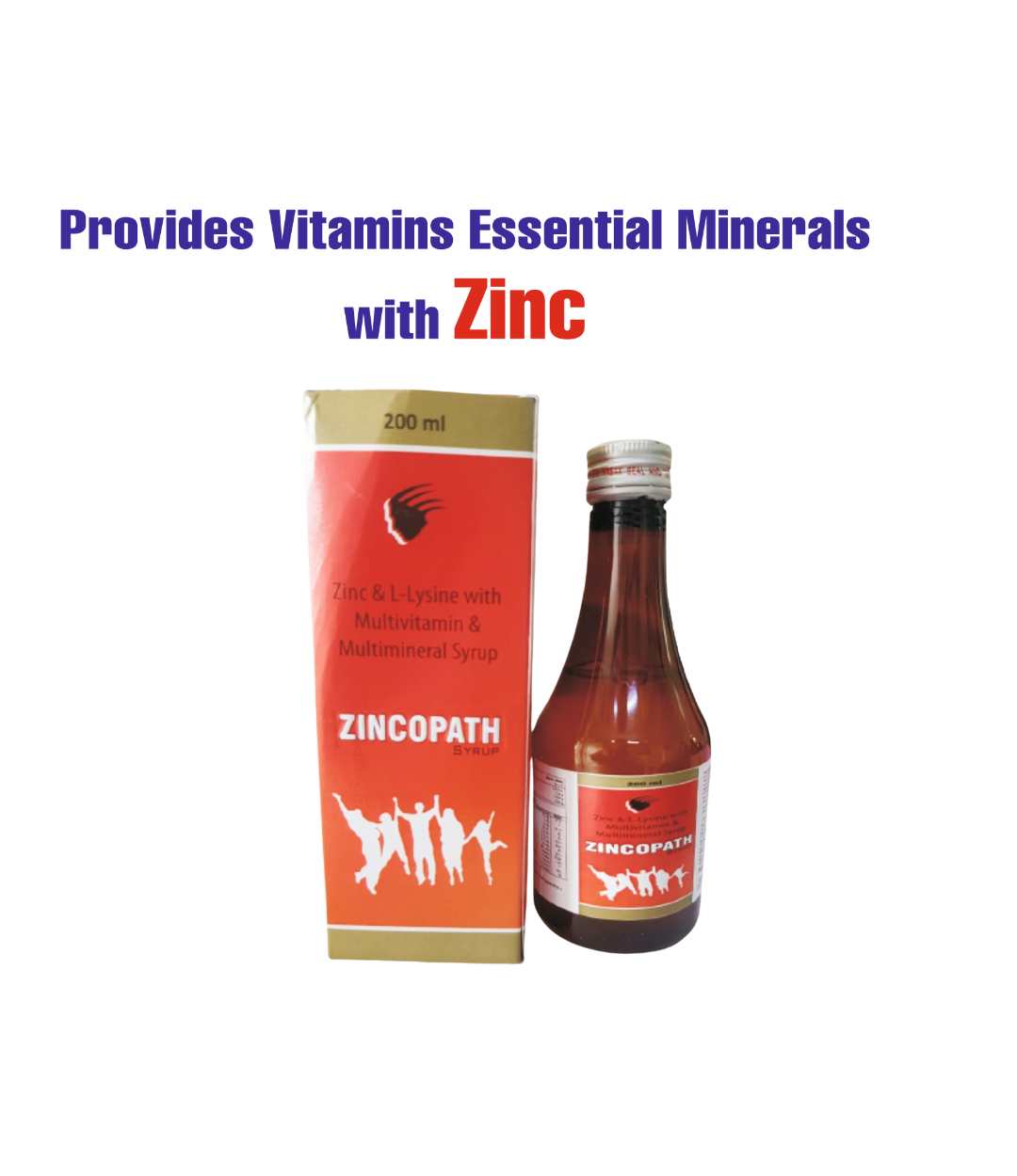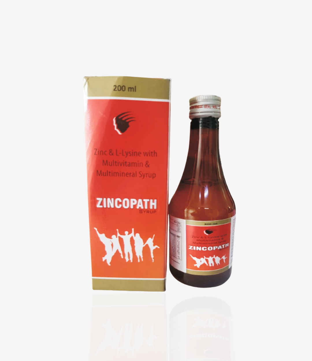ZINCOPATH® Syrup is a complete nutritional supplement formulated with Zinc, L-Lysine, Multivitamins, and Essential Minerals to support skin health, boost immunity, and accelerate wound healing.
